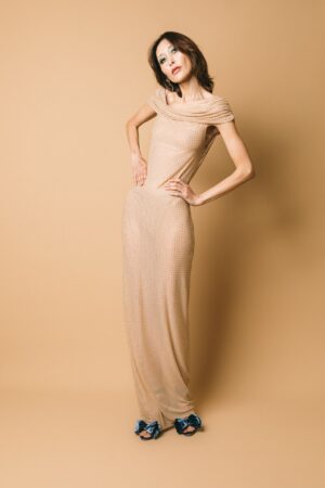 Gli Abiti Alberto Audenino si distinguono per linee essenziali che esaltano la figura con equilibrio tra struttura e fluidità. Modelli aderenti con inserti laterali, abiti lunghi con spacco frontale o monospalla realizzati in tessuti stretch e rifiniti con tagli netti creano silhouette scolpite e moderne.