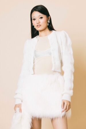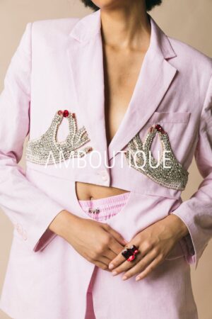 Ricami decorativi, volti stilizzati e sagome inusuali trasformano ogni capo in una dichiarazione di stile. Le silhouette morbide e femminili sono accompagnate da accostamenti grafici e finiture ricercate, pensate per chi ama esprimere personalità attraverso l’abbigliamento.